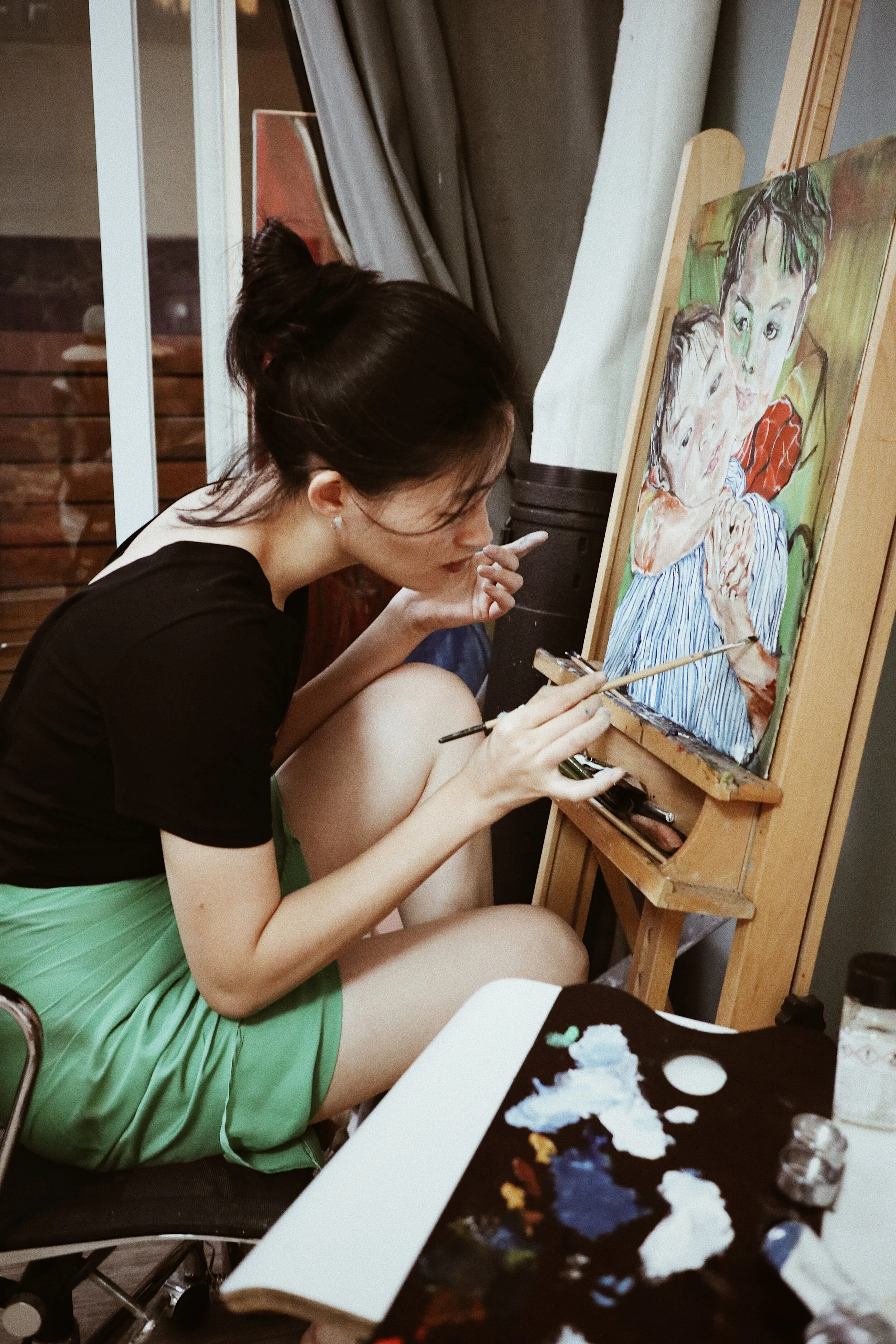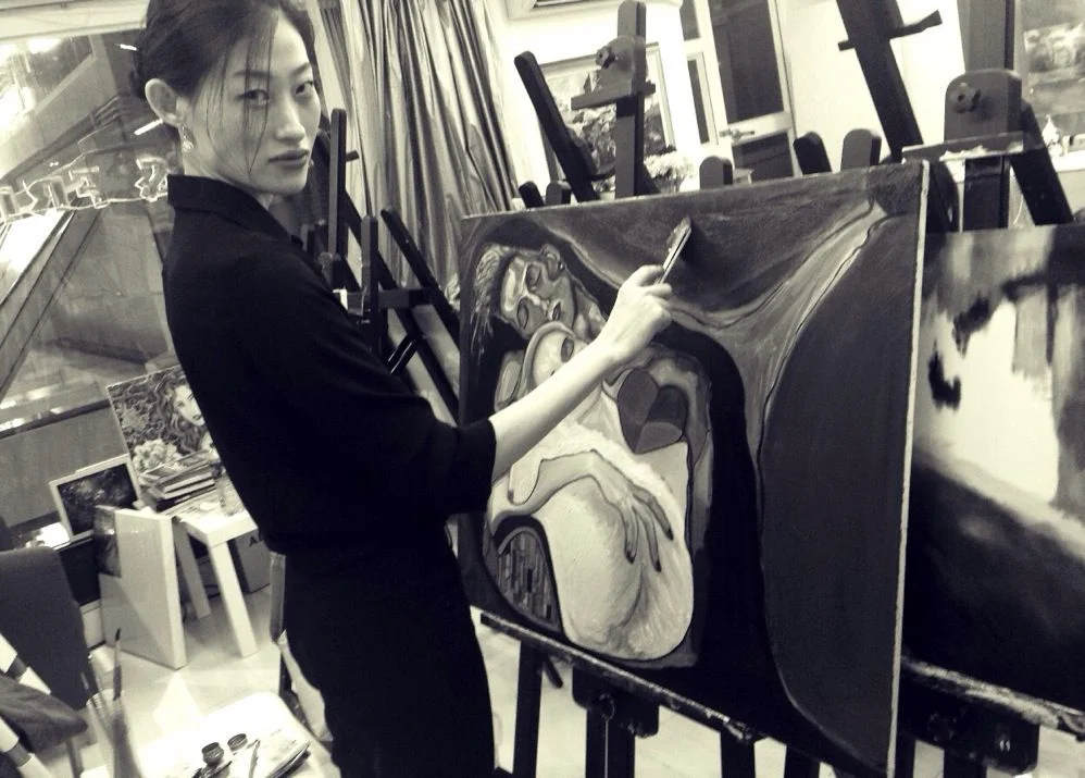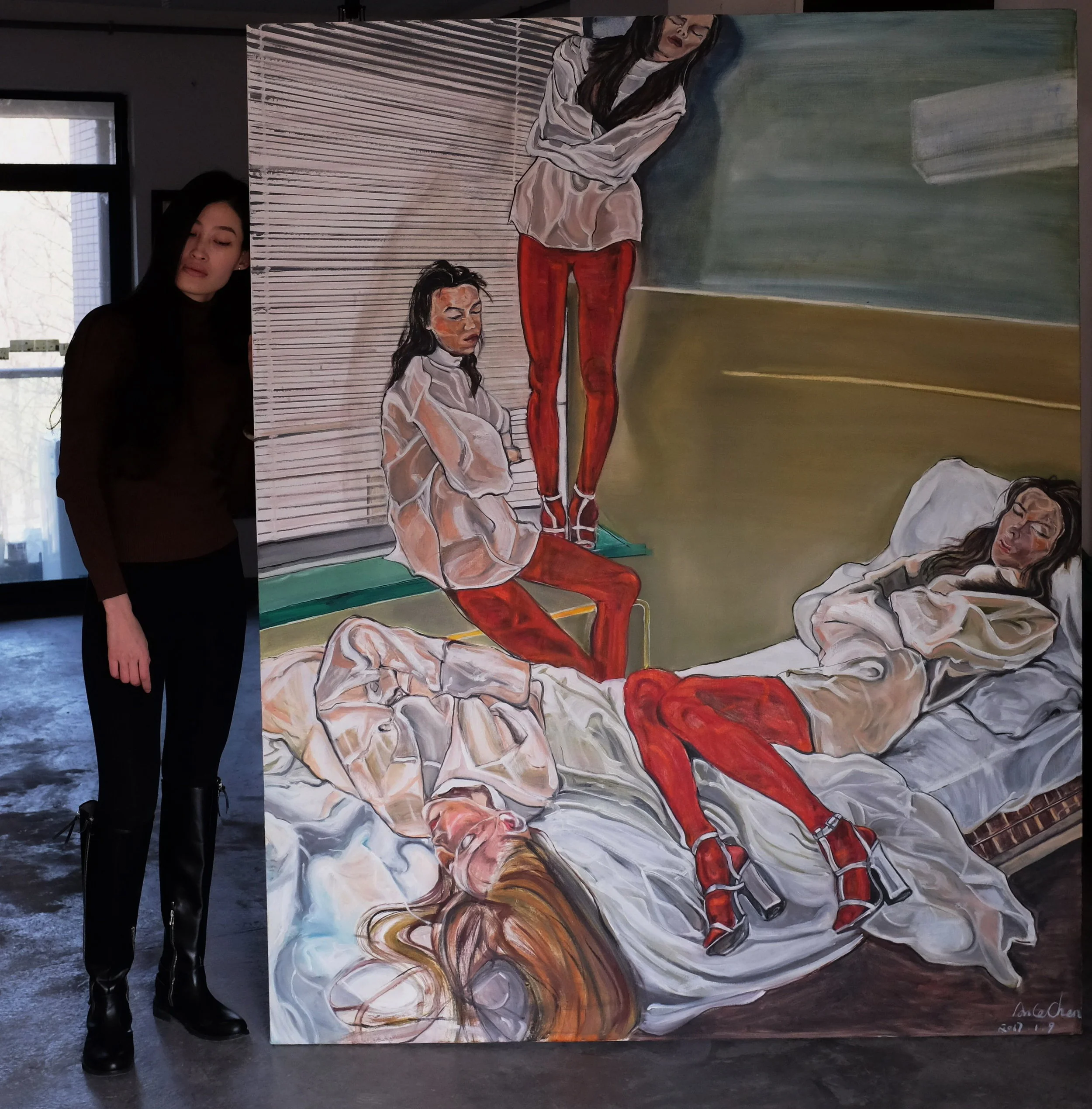 Anle Chen was born in Yueqing close to Hangzhou; after a brief career in the adminstration,she started a late but successful career as a model,including a few covers of prestigious magazines.After a few years of this exciting but rather repetitive life as the model,she decided in 2013 to devote herself to her life long passion:painting.